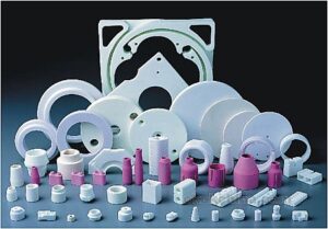 Z ceramiki technicznej wykonuję się cały typoszereg części maszyn w tym m.in. elementów ślizgowych, łożysk, dysz, tłoków, uszczelek.